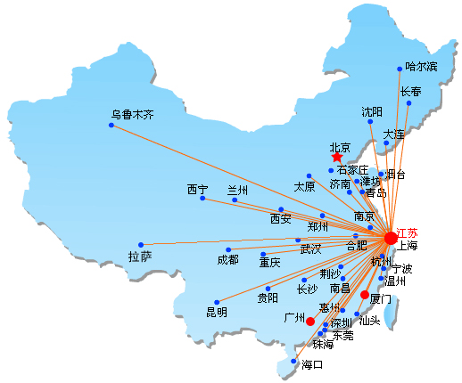 江苏省:苏州、无锡、常熟、张家港、昆山、常州、江阴、南京、扬州、镇江、南通、泰州、江都、徐州、吴江、溧阳